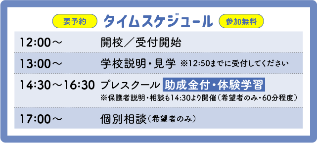 プレ入学制度って?毎月開催されるプレスクール(体験学習)を無料で何度でも受講でき、受……